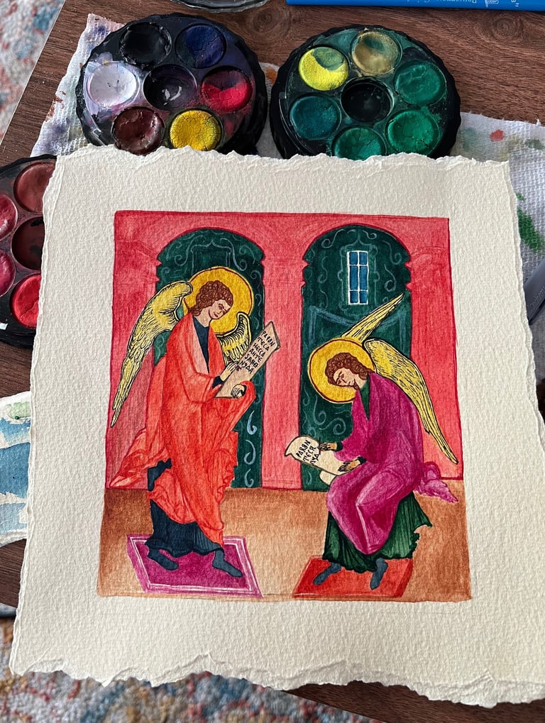 Experience the divine beauty of original artwork inspired by medieval illuminated manuscripts, crafted with love and devotion to bring timeless elegance into your home.